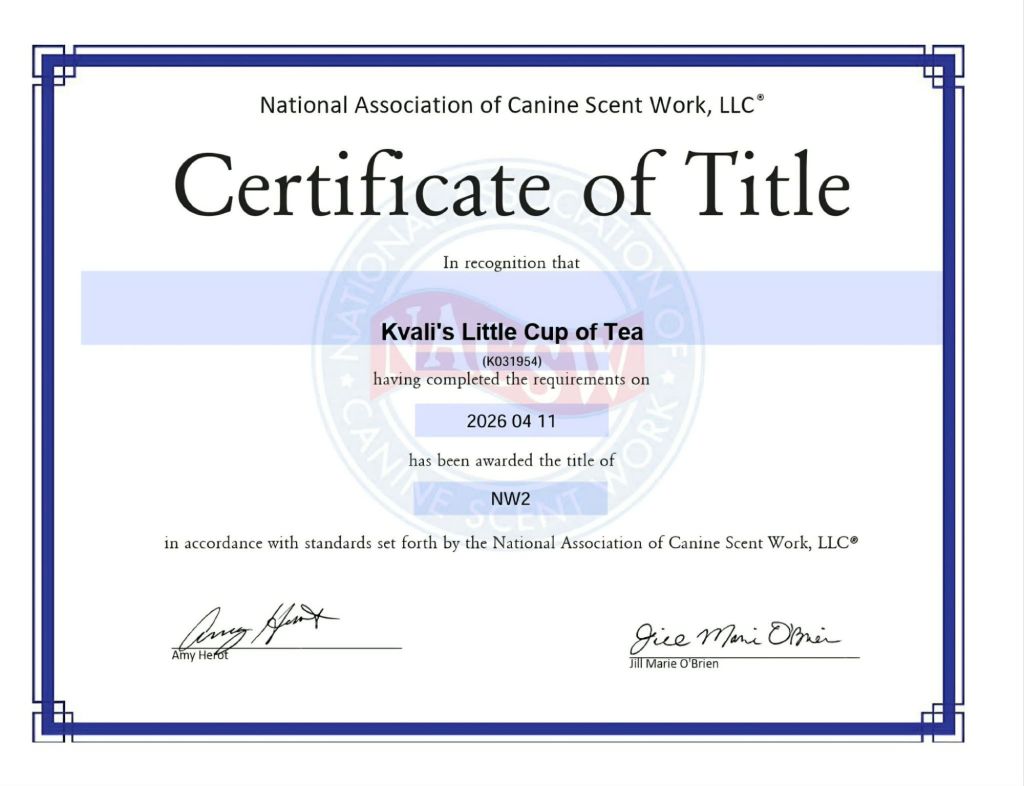 *-UKC Novice Nosework Title. November 2024