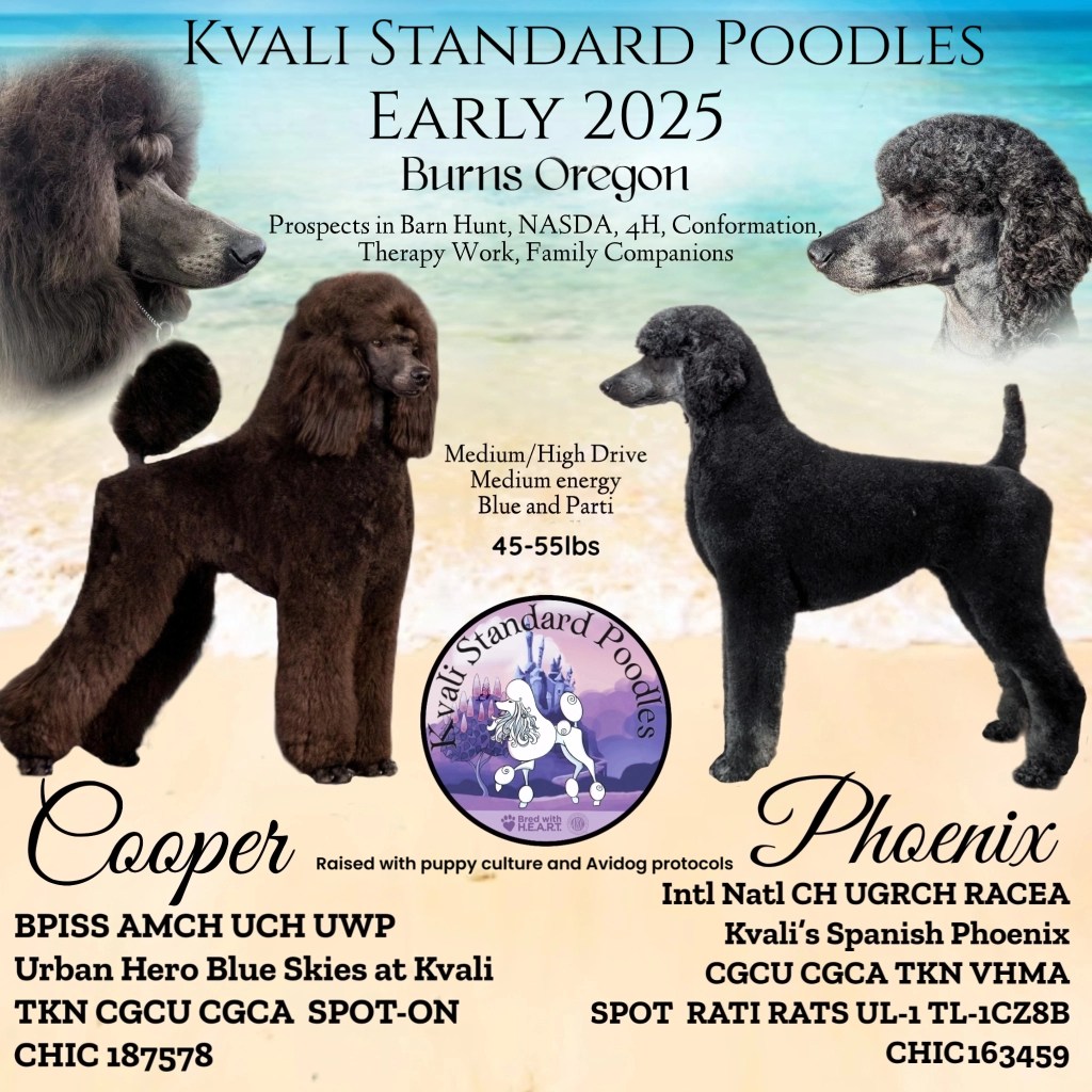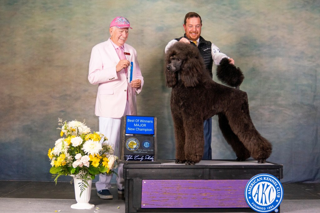 Cooper is bred by and co-owned with Urban Hero Standard Poodles, and joined our program as a puppy. We wanted a poodle we could show in AKC, and Cooper absolutely loved it! He finished his AKC Championship quickly at 11 months.