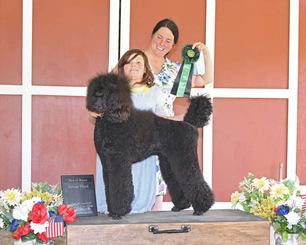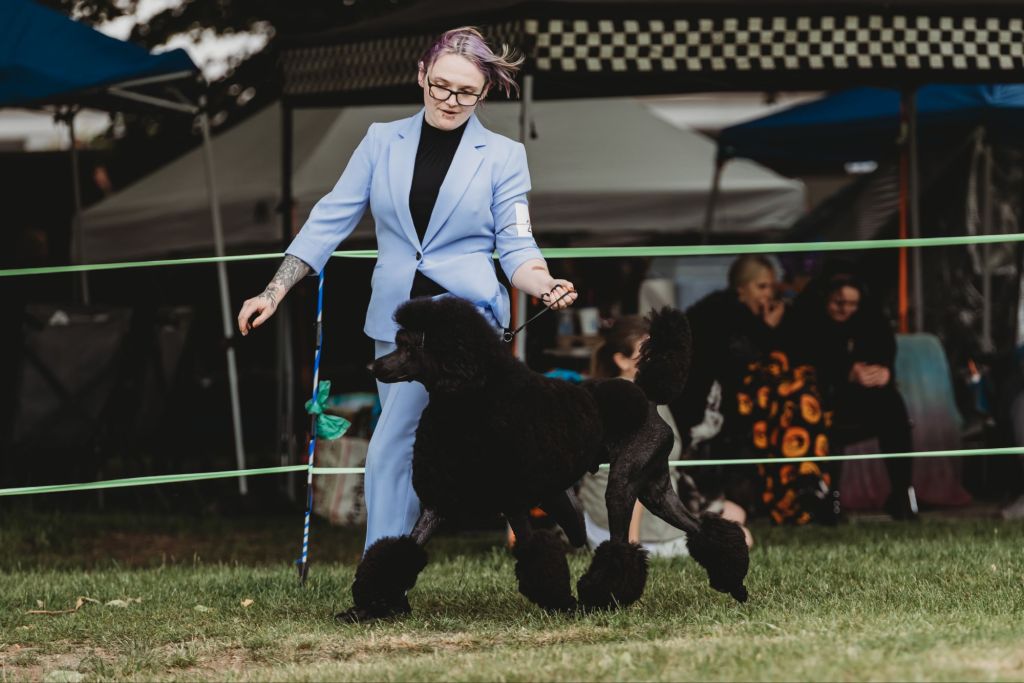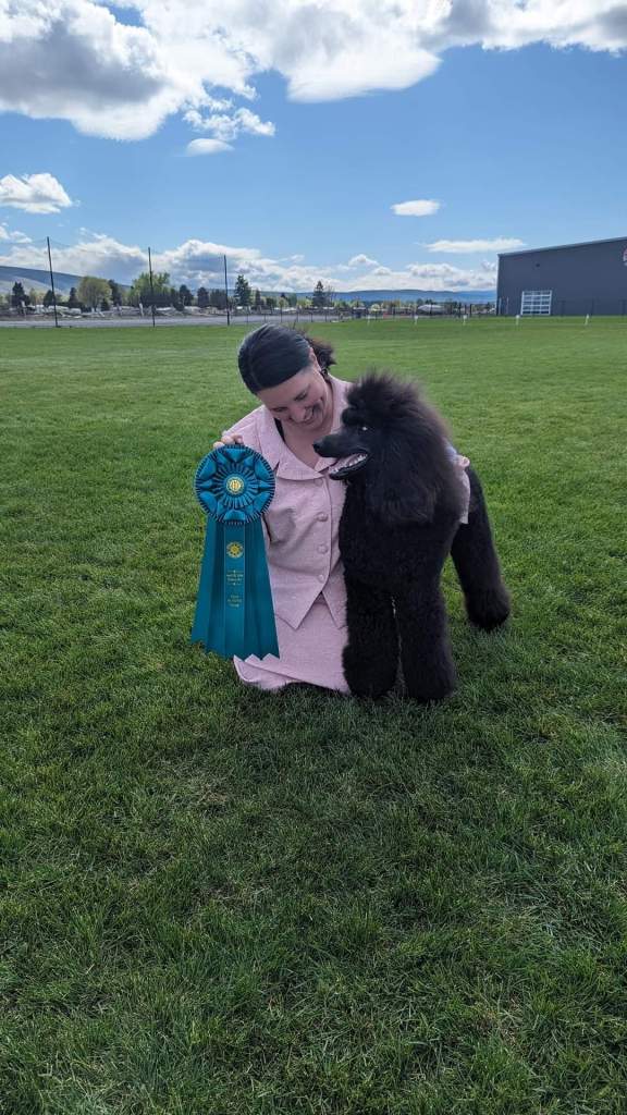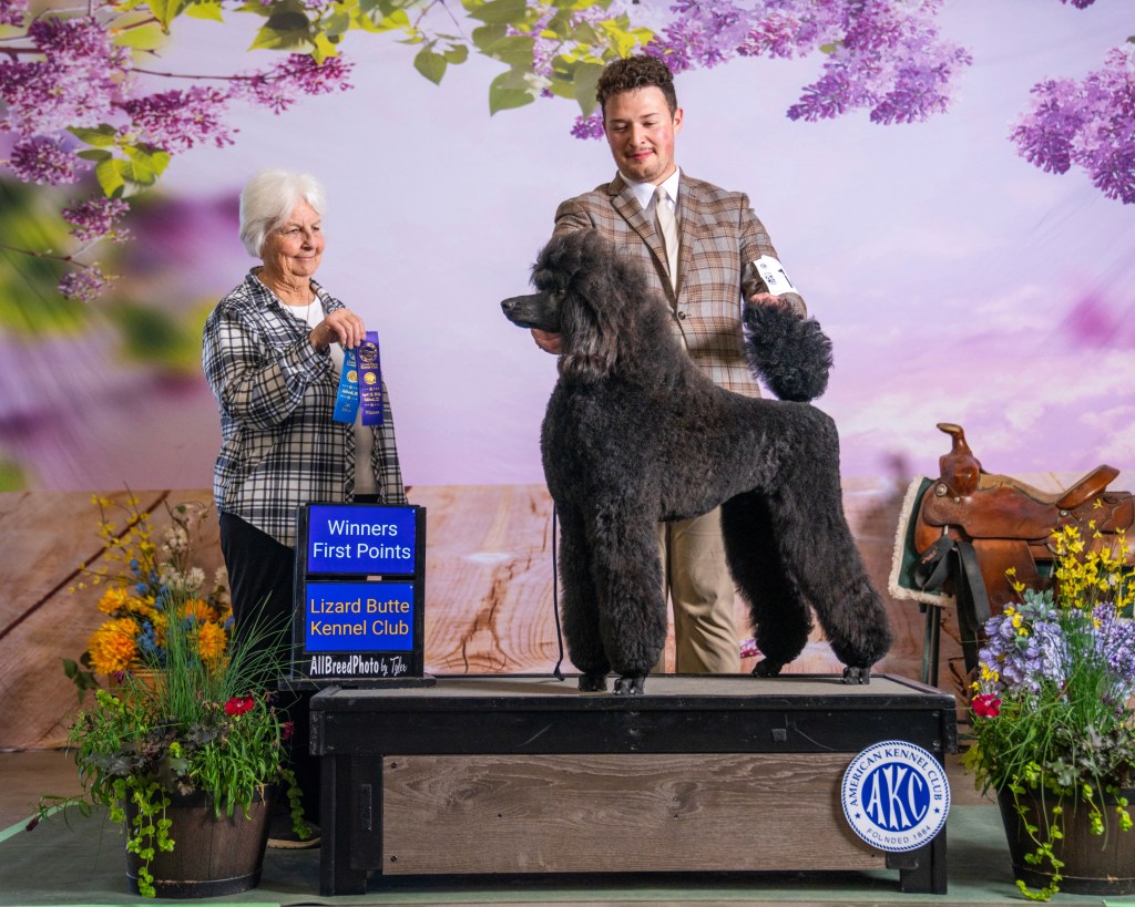 Finan started life with our friend Karen, learning the ropes in obedience, foundation skills, and getting ready for his show career. Thanks to Karen, Fin had a fantastic start and finished his AKC Championship handled by Braxton Hernandez and Braden Jones in two weekends!