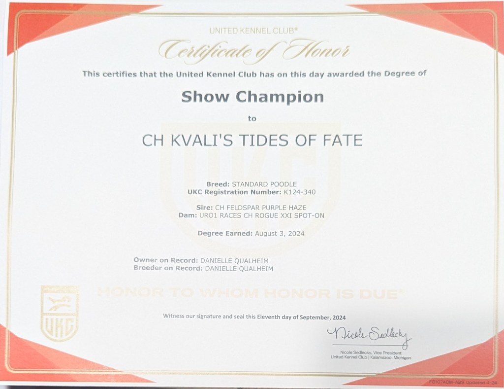 Finan is finishing up health testing and will be available to approved purebred standard poodle programs. No doodle, Merle, or mixed breeding.
