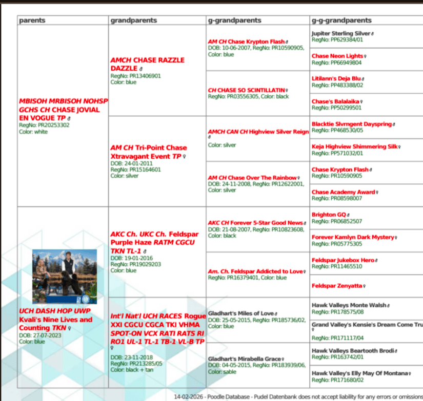 “Dax” UCH DASH HOP UWP Kvali’s Nine Lives and Counting TKN CGC SPOT-ON Total Dog