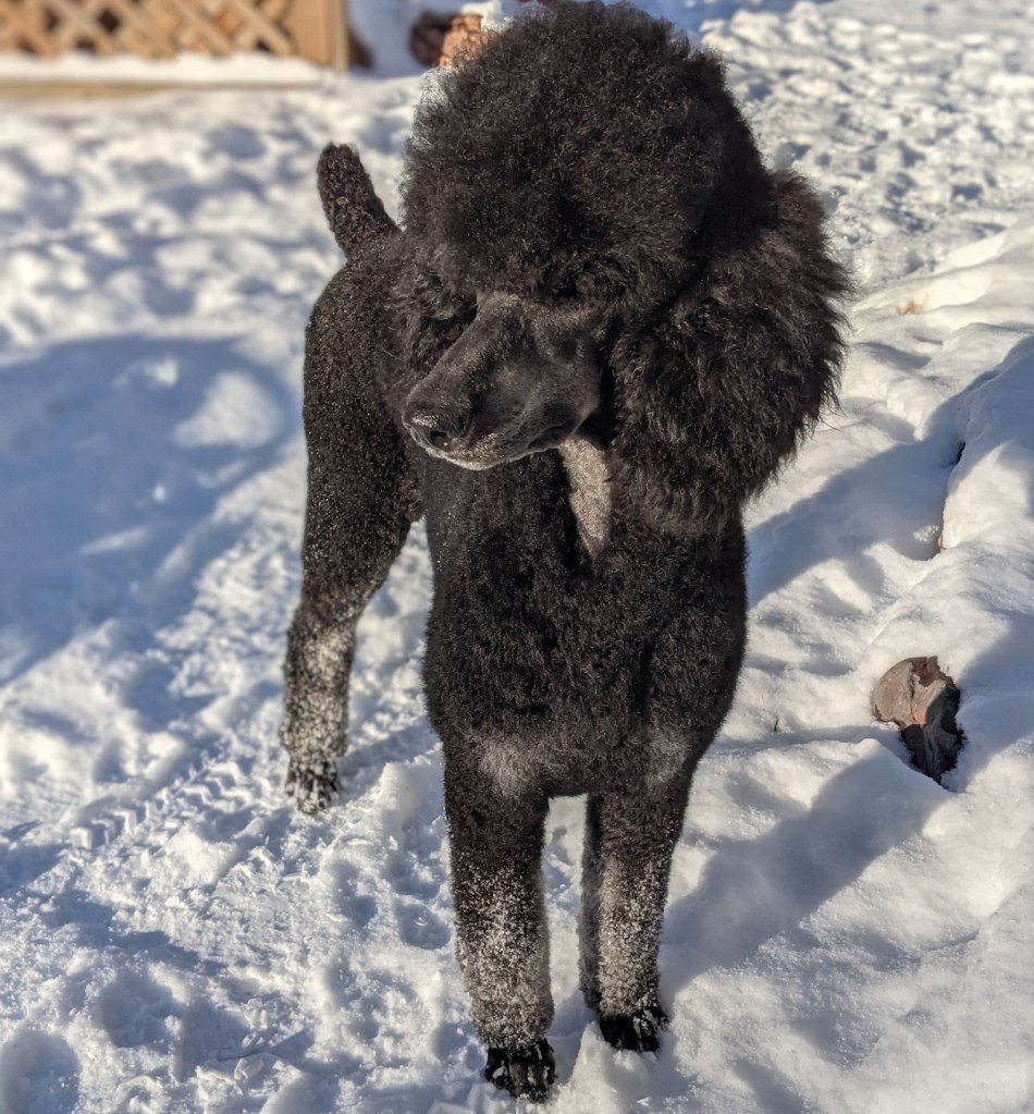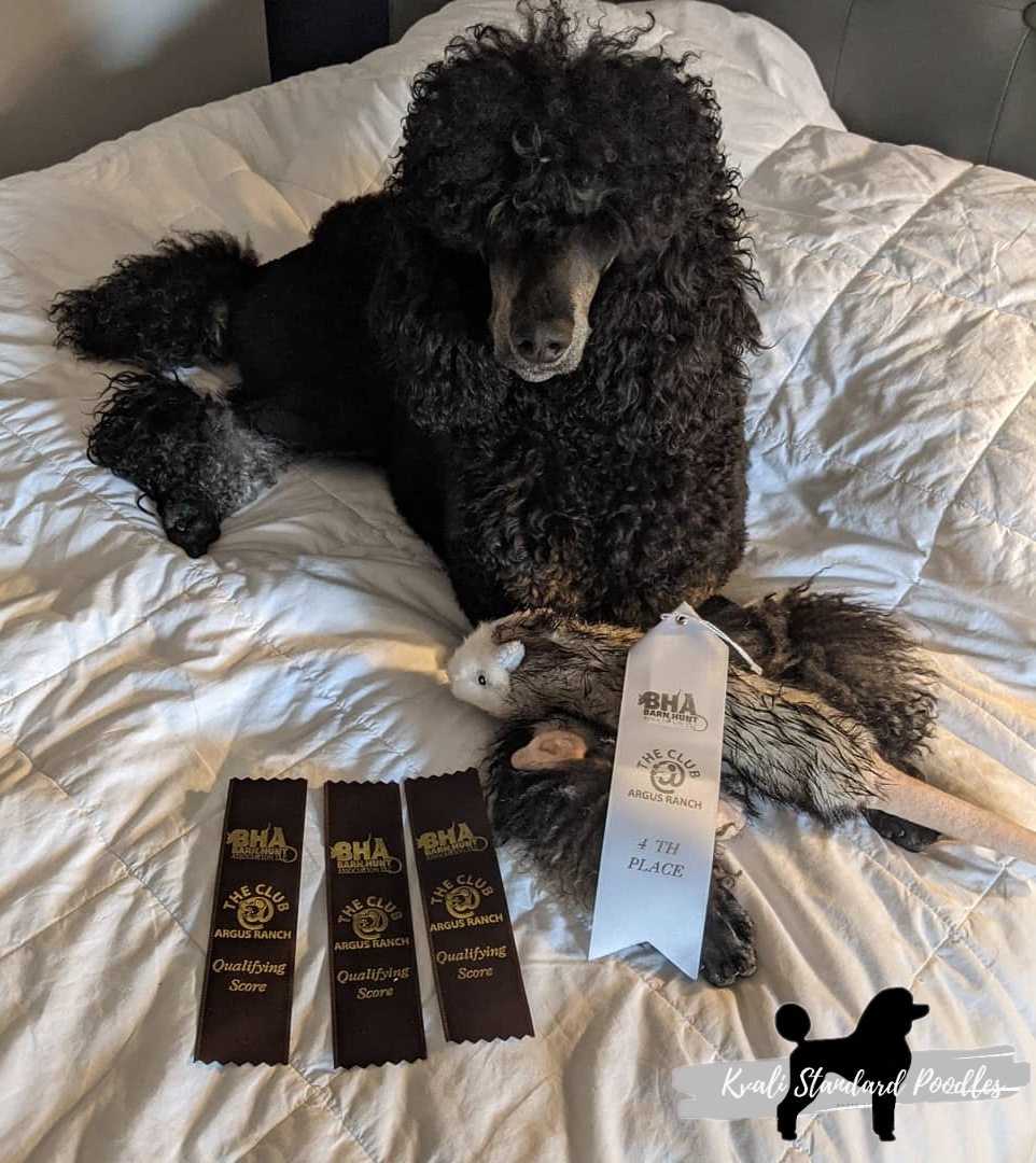 She’s our poodle with the most prey drive and energy, which makes it fun to do Barn Hunt, Lure Coursing, hiking and exploring with. One of the funny things Phoenix does is smile!